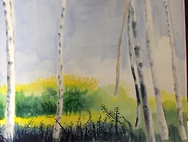 팔랫에 물 듬쁙 적신 붓으로 물감을 풀었다.